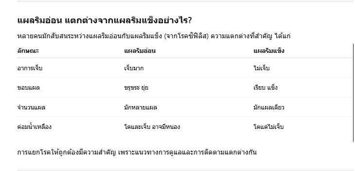 คำถามที่พบบ่อยเกี่ยวกับแผลริมอ่อน (FAQ)